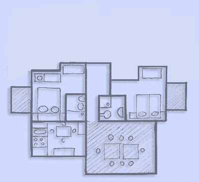 Bedrooms are furnished with double beds, and apartment has possibility of fitting one single spare bed if needed.